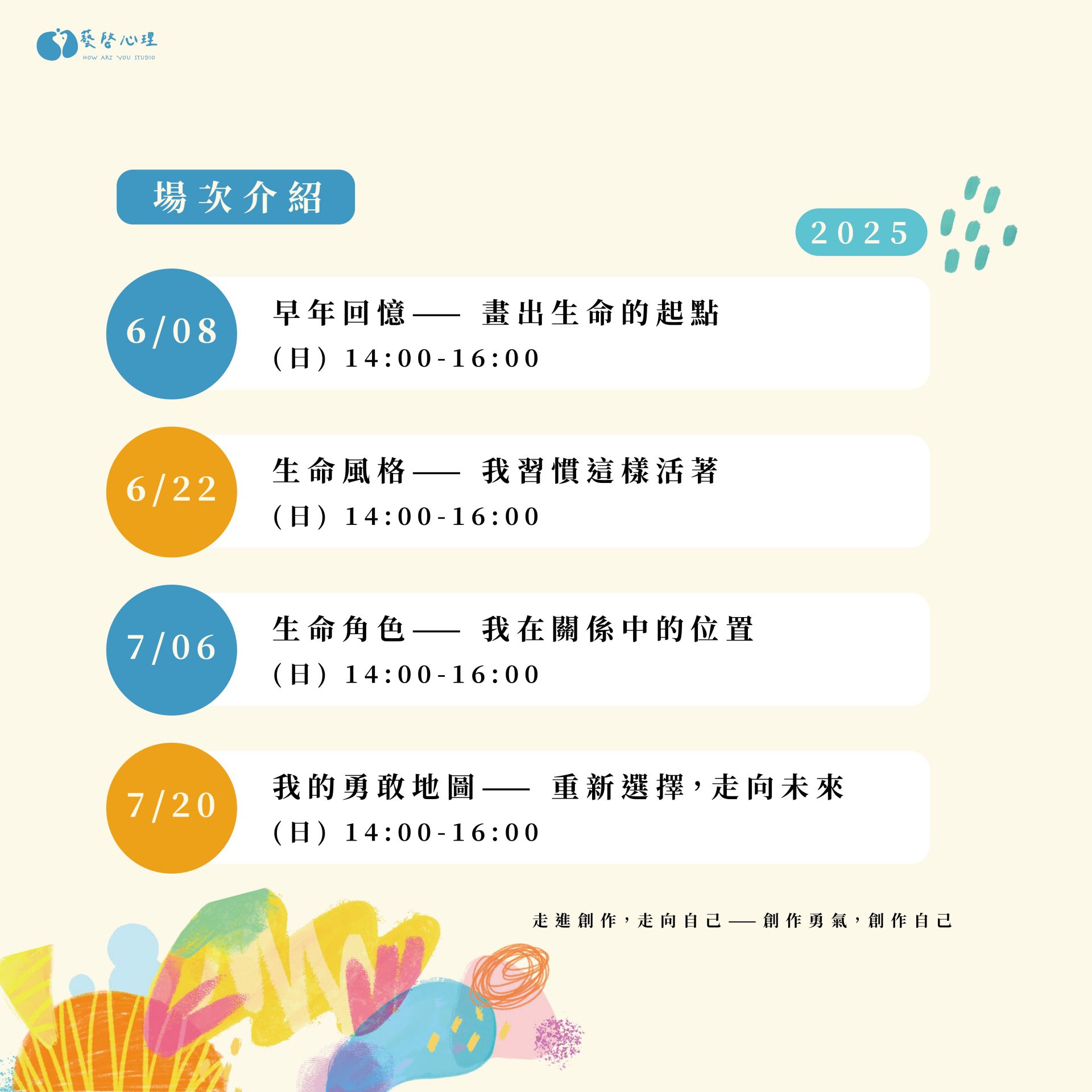 適合對象:對「自己」有興趣的朋友,沒有藝術治療背景也非常適合參加 !